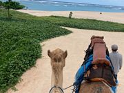 「ヒルトンバリリゾート」の中に受付カウンターがありました。 友達と二人での参加でしたが、スタッフさんが写真の撮影もしてくださり、とても親切でした。 ホテルのプライベートビーチをゆっくり散策してくれます。 初めてのラクダ乗りでしたが、象さんと同じ位の高さでした。 綺麗な海を見ながらの散策は最高! ラクダは3頭が並んで走行し、一頭目は空き二頭目と三頭目に一人づづ乗りました。