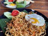 続いてはランチ。THE KAWI RESTO POOL AND BARというレストランです。朝ごはんのメニューを選ぶこともできましたがランチを選択。ミーゴレンorナシゴレンで