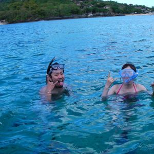 今回初めてバリに行きました。本当は、去年バリに行く予定でしたが出発当日台風直撃で飛行機が飛ばず、今回はそのリベンジもかねての旅行でした。女友達と2人での参加で、右も左もわからない私たちは不安でいっぱいでした。しかし、このツアーのはじめから、バリ在住日本人の直実がほとんどついて接してくれて安心して参加することができました。船の中は台湾、韓国、中国人が圧倒的に多く、日本人は私たち2人だけでした。しかし、直実はじめ、マヌーさん、船長のヤントさん、他スタッフの方々がよく声をかけてくれ、シュノーケルではヤントさん自ら一緒に潜って案内してくれました。ヌサ・プ二ダ島散策ではカメを抱いて写真を撮ったり、衣装着たり、ココナッツを食べたり、貴重な体験ができました。こんなに一日を満喫できて本当にみんなに感謝しています。ありがとう!そして、またバリへ直実やヤントさん達に会いに行きたいと思います。