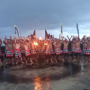 雨も降ってきて中止かと思いましたがケチャックダンスは、予定通り開催され見れて良かったです。事前にストーリーを確認していたので、楽しく見ることができました。確かガイドさんが、事前にあらすじを書いた紙をくれ、説明してくれたような気がします。またいつか、サンセットを見るために再度参加したいな~と思えるツアーでした。