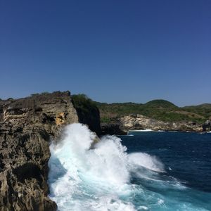 午後はレンボンガン島の散策です。断崖絶壁に波が打ち寄せて、もの凄いシブキが舞い上がります。必見です。その断崖絶壁で中国人女性達は妖艶なポーズで写真を撮っています。