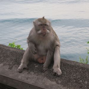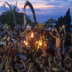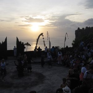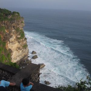 ウルワツ寺院は岬の絶壁の上にあります。中には入れませんが、その絶壁をギリギリの上から見ることができます。波も高く、サーファーもほとんどいないため、とてもきれいな透明度の高い淡いブルーの海水と、真っ白い水しぶきが印象的です。