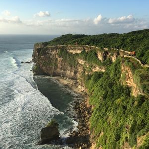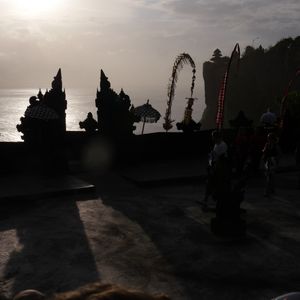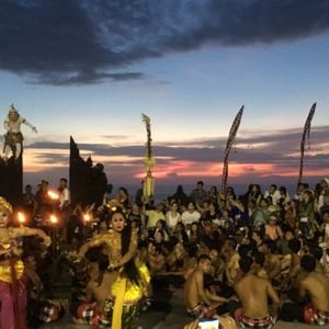 時間通りにホテルに迎えに来ていただき、出発!。道路は少し渋滞していましたが、ウルワツ寺院に到着。駐車場から寺院のモニュメントを通って、階段を上りきって視界が開けたとたん、圧巻の景色に絶句!!!!!。断崖絶壁に寺院にインド洋に、雨模様でだった天気が太陽が顔を見せてくれ、最高のけしきでした。ガイドさんもポイントポイントで写真をとっていただき感謝です。ケチャダンスも雨が降ってきたらどうなるのか心配していたのですが、夕日を眺めながら、寺院のシルエットを見ながら、迫力のダンスを堪能できました。ガイドさんの日本語は流暢で意思疎通問題なし。