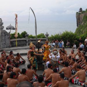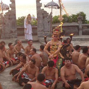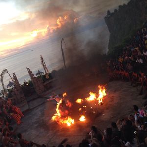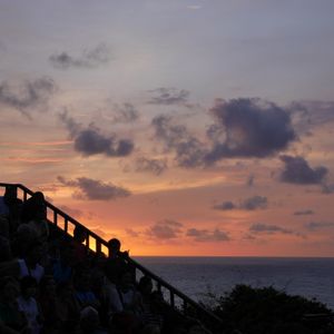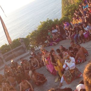 ウルワツ寺院では、直射日光がすごくとても暑かったですが、断崖絶壁から見える景色は最高でした。疲れもふっとぶくらいの絶景です。野生の猿もいるという話でしたが、あまりの暑さに1.2匹しかいなかったです(笑)ウルワツ寺院を見た後は、ケチャックダンスです。日が沈むまではとても暑いので、帽子やうちわを持っていくことをお勧めします。(笑)ケチャックダンスの会場はたくさんのお客さんで埋まっていて、とても人気な伝統芸なんだなと思いました。ケチャックダンスには、ちゃんとした物語があり、それを理解したうえで見ると言葉がわからなくても楽しむことが出来ると思います!また、ケチャックダンスは夕暮れ時から太陽が沈む時間に行われるため、水平線が見える海に太陽が沈む景色を見ることができます。ケチャックダンス・サンセット・ウルワツ寺院のコラボレーションは本当に感動しました!是非多くの人に見てもらいたいです。