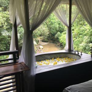 滞在最終日に利用。滞在ホテルからの送迎が30分以上早く着いてしまったが、快く開始時間を早めて頂けました。それに伴い、終了時間も早くなったため、空港への送迎も時間変更をお願い出来てよかったです。スパは渓谷のそばにあるriver viewのプライベートルームにて3時間。川のせせらぎを聞きながらマッサージを受けました。渓谷そのものは茶色い水の流れる川で美しくはないですが、マッサージを受けている最中は川の流れを聞いているだけなので・・・。マッサージは可もなく不可もなくといった感じです。滞在中に他でもスパを受けましたが、現地のスクラブマッサージはどこも物足りない感じです。フラワーバスはプルメリアのお花がいっぱい入って綺麗でした。2月利用で川のそばだったので、もう少し温度が温かくてもよかったかと。最終日の帰国フライト前に3時間川のせせらぎを聞きながらのマッサージは優雅な気分になれました。