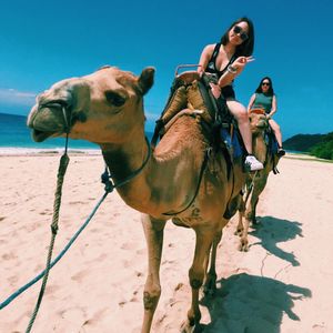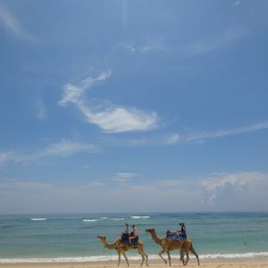 透き通る海,深呼吸したくなるような青空!その下でのキャメル・サファリは今までにない最高の思い出になりました。後続のラクダの顔がすぐ近くに迫って来て大迫力でした。また乗りたいです。