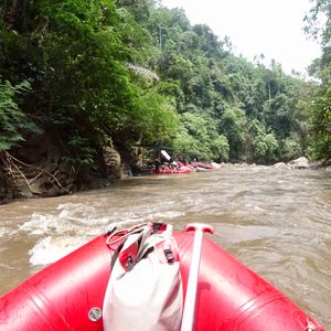 乗馬にラフティング、それにジャティルイ棚田の見学がたった1日でできてしまう欲張りツアーでした。現在はジャティルイ棚田ではなくウブド近郊の棚田に変更になっているそうですが、テガランライステラスへは行ったことがありますし、ジャティルイに行きたくて本ツアーに申し込んだので、その辺の事情を現地の旅行会社と交渉し、念願のジャティルイライステラスへも行くことができました。テガランよりも規模が大きく素晴らしい所でした。行く途中でどしゃ降りの雨と遭遇し、雨合羽を着て車に乗るというワイルドな経験もしました。