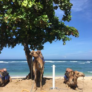 高級ホテル前のビーチを散策でき、馬より高い位置より眺めは最高です。1時間散策のツアーもありましたが、30分のツアーで十分です。クタのホテルを8時に出発し、11時には戻ってこれたので、午前中の時間を有効に使え、しかも通常では体験できない「らくだ」で大満足です。