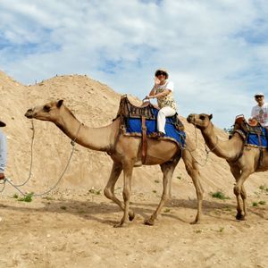 実は予約当日は雨が止まず、キャンセルになってしまった為、日にちを変更して再チャレンジ!キャンセル時の対応がいまいちかな?もっと早く対応してくれてたら時間も有効に使えたのに。。。しかし送迎ドライバーさんが大変親切で、1回目はスーパーへ、2回目は換金所経由でホテルへ送ってくれて助かりました!本題のキャメルサファリですが、若めのお兄さんにカメラを渡すととにかくたくさんの写真を撮ってくれます!海辺を走り回って様々な角度からいい写真を撮ってくれます!私は30分でしたが、充分だと思いますよ〜〜。とても楽しかったです(o^—^o)