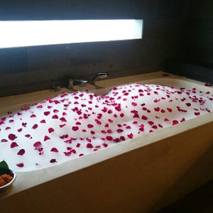 初バリでスパをすることは行く前から期待いっぱいでした。到着翌日の午前中から参加したのですが、まず古い送迎車の運転の荒さに到着するときは酔ってしまい、残念な気分でのスタートでした。その上着いたら部屋の準備がまだのようで、暑い中庭で待たされました。期待は薄れていく一方でした。始めのマッサージはオイルが少なめで痛かったです。一緒の友人は太ももに青あざができて、翌日以降のスパは全キャンセルでした。アロエとはちみつを体に塗ると直ぐにフラワーバスに入るように言われました。それも紙パンツを履いたまま入るように言われてとても驚きました。楽しみだったシロダーラはタオルが目に掛けられていたのでよくわかりませんでしたが初体験の感覚を楽しめました。ただやっぱり癒されたとはいえませんでした。