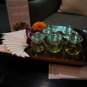 ウェルカムドリンクを頂きながらスパの内容・スパで使うオイル、クリームを香りを試しながら選びます。