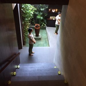 今回2人で3時間のスパを体験しました。クタの中心地のホテルに宿泊していましたが、30分前にホテルに送迎車が来て、約15分ほどで到着しました。店内入り口は普通の店構えですが、サロンスペースに入ると綺麗な中庭があり、通路沿いに完全プライベートの個室が並んでいました。個室内は、清潔感があり、外にシャワーとバススペースが併設されていました。まずは全身のオイルマッサージを1時間ほど受けた後、保湿パック?を塗り20分待った後は外にフラワーバスが用意されていました。温度も適度で、水回りも清潔で、旅の疲れが癒されました。フラワーバスの間に、フレッシュジュースとクッキーを頂けて、美味しかったです。最後にシロダーラと一緒に頭皮マッサージがありました。シロダーラは個人的には少しくすぐったかったのですが、終わった後は顔がスッキリしたように思いました。シロダーラの時間が結構長く、その後はシャンプー含めたヘッドスパをして終了でした。ヘッドスパもとっても気持ちよかったです。ずーっと何か施術されてるというよりはベットでゆっくりしておく時間も多く感じましたが、トータルして満足のいく施術でした。