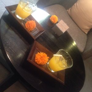 バスの温度は程良く、水回りも清潔で、旅の疲れが癒されましす。フラワーバスの間に、フレッシュジュース(スイカジュース)&クッキーがでました。クッキーは普通でしたが、ジュースは美味しかったです。最後にシロダーラと一緒に頭皮マッサージがありました。初めてのシロダーラ体験は、おでこが少しくすぐったい感じでしたが、気がついたら眠ってしまっていました。その後はシャンプー含めたヘッドスパをして終了でした。