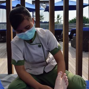 友達と2人で5時間プラス軽食付プランでお願いいたしました。施術はまぁまぁ良かったです。私達はバリで食べ物が合わず…でしたが最後の軽食が大きめでとても美味しいクロワッサンを頂きました!食事だけでもイイなとも思えるくらいのクオリティでした!5時間で5つのプランを選べるのですが、流れで通し5時間やって頂きたかったです。(一回一回、何々が終わりました。とこえを掛けられた為…)それ以外は特に気になるところはなく、大満足でした。