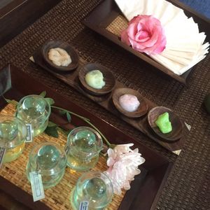 マッサージやクリームバスは、実際に使用するオイルやクリームを数種類のなかから自分の好みの香りを1つずつ選ぶことができました。