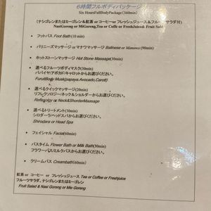 今回最終日のフライト前にスパでゆっくりと思い、友達2人で6時間コースを予約しました。