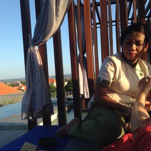 ホテルへのお迎えはルーズかと思っていましたが、約15分前に来てくださり逆に少しお待たせしてしまいました。スパへ着くとウェルカムドリンクを頂きながら、施術メニューの確認、またメニューで使うアロマやクリームを数種類の中から選びました。私の選んだメニューは、オイルマッサージ(ブンガバリというプルメリアのお花の香りのオイル使用)→ホットストーン→ルルール&ヨーグルトパック→フェイシャル(ホワイトニング)→クリームバス(ストロベリーの甘い香り/パーマやカラーで傷んだ髪の毛向け)です。荷物、貴重品等を鍵付きのロッカーに預け、いざお部屋へ!今回は2人で申し込んだのですが、メニューは違えど隣同士のベッドにてマッサージを受けられました。まずはサロンに着替えます。着替えたらすぐにオイルマッサージから!左ふくらはぎ→左太もも→右ふくらはぎ…と順々に頭、お腹、指先まで念入りに行って頂きました。続いてのホットストーンは事前に熱いとは言われていたので心していましたが、本当に最初は熱かったです(笑) こちらも足元から順番にマッサージを行って頂き、温かくて気持ち良かったです。こまめに熱い?と聞いてくれるので熱い場合は素直に言えます。次は、バリならではのルルール&ヨーグルトパック。ルルールもヨーグルトもかなり冷たいです。最初に米の粉からできたルルールを全身(仰向けなのでお腹の面)に塗られ30分ほど固まるまで待ちます。固まったルルールをこすって落とし、ヨーグルトパックを同様に塗られまた30分ほど待ち、シャワーで洗い流します。ここまでやったところで少しスベスベ感を感じられました。そしてシャワーでパックを洗い流したら着替えて、フェイシャル。クレンジングはわかったのですが、あと何をやって頂いているのか分からず終わってしまい残念でした。日本語堪能なスタッフなので、行っているメニューを教えてくれればもっと実感も出来、満足度も上がったと思います。最後にクリームバス。シャンプー台のある部屋へ移動しました。まずは自分の選んだトリートメントを塗られます。そして蒸気を充てしばらく待ちます。10分程経ったらシャンプー台にて洗い流し、シャンプーもしてくれます。この時に首の痛さ等を気遣ってくれますがやはり痛いです。シャンプー台は日本のようなクオリティーはないので仕方ない部分もあるかと思いますが、長時間首を後ろに曲げているのは辛かったです。髪を乾かして頂き終了でした。金額とメニュー、対応を総じても大変満足でした。メニューは記載通り60分ですし、メニューとメニューの間には必ずお手洗い行きますか?と気遣ってくださいました。また最初のウェルカムドリンクを含め、4回ドリンクを頂き水分補給は完璧でした。今回は2名にて申込みうち1名をモニター料金でしたが、大変丁寧に施術していただき、とてもリラックス出来ました。また諸事情により、当日事前にお伝えしていたメニューから別のメニューへ変更を希望したところ、快く了承してくださり大変気持ちの良い対応でした。バリも長時間も今回が初めてでしたが、またバリへ行った際にはリピート決定です。ありがとうございました。