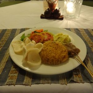 食事は,ミーゴレンかナシゴレンで味は普通でした。