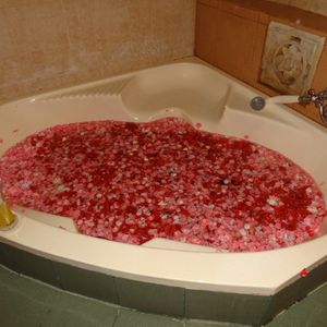 フラワーバスは今回で2度目。花びらの敷き詰められた浴槽はやはりリッチな気分になり乙女心をくすぐります。シャワーの排水溝の流れが少し悪かったトコは気になる点です。
