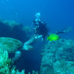 日本人のスタッフで本当に丁寧にやさしく教えてくれますので、安心して楽しく潜ることが出来ました。初ダイビングでどの程度潜るのか分からなかったのですが、補助つきで意外に深く潜るのでビックリ!!沈没船を間近で見ることが出来て、映画のような世界です。沈没船もスケールが大きく感動モノでした。波がある日でしたので明度は高くありませんでした。カラフルな魚は殆どいません。魚を鑑賞するというより、沈没船メインに楽しむアクティビティだと思います。