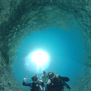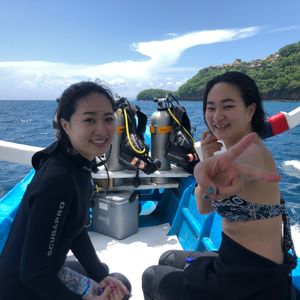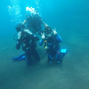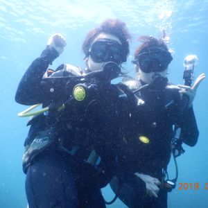 参加させて頂いた2人とも体験ダイビングが2回目だったため最初は不安がありました。しかしながら陸では簡単な座学、海ではシュノーケリングを行なって海に慣れ、その後浅瀬でダイビングの呼吸から緊急時の対応までを教えていただいたため、実際のダイビング時には不安は全くなく綺麗な海を楽しめました。