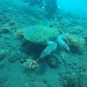 雨季に参加したので、海の透明度はそれほど良くはなかったです。しかし、沖縄のダイビングよりも魚の種類やサンゴが多かったように思います。魚の群れもいくつか見れてとても素敵でした!沈没船は想像の何倍も大きく、沈没船の中を通り抜けたときはすごく興奮しました!インストラクターも参加者二人に対して日本人の方と欧米の方の2名が偶然ついてくれて、車もほかの参加者がいなかったので貸切状態ですごく快適に過ごせました。ランチも美味しかったです。とにかく沈没船が大きくてびっくりしました!行ってよかったです。