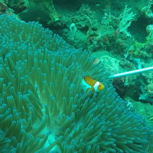 波の関係上場所の変更になってしまい残念でしたが、とても親切に日本のインストラクターの方とサポートしてくださる方いて、1人の参加でしたがとても楽しいダイビングでした。私が見逃さないように2人の方が魚の場所やら位置まで丁寧に教えてくれて、綺麗な魚や亀。小さなサメまで見る事が出来ました。ダイビング経験はまだ3回しかした事がありませんが魚やイソギンチャクなどとても綺麗で感激出来るものでした。