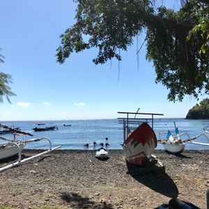 まだ薄暗さが残る時間。事前に「ホテルにお願いすればテイクアウト用の朝ごはんを作ってくれるかも」とお手紙を頂いていたので、お弁当を持って出発できました。1時間半ほど移動した場所で手続きやウエアなどのサイズを確認し、更に2時間半ほど移動。トランベンのレストランはダイビングする人たちの貸し切り状態。席に着きながら説明を受け、目の前のプールでいざ練習!実際に潜りながら器具の使い方を学び、慣れてきたところで目の前の海に向かいます。ボンベやウエイトなど30キロは修行の感覚ですが、水に潜った瞬間、世界が変わります。まるで巨大な水族館に潜り込んだみたいに、見たことのない魚たちたちが優雅に泳いでいるんです。魚たちはあまり怖がらないので、こちらが避けなくてはならないほど。特に沈没船は、その名に相応しくない生き物の住みかになっていました。レストランであらかじめ選んでいた昼食を食べたら、もう一度ダイブ。わたしは初めてのダイビングで最初は呼吸を続けるのにいっぱいいっぱいだったのですが、だんだんフィン(足ヒレ)の使い方にも慣れ、ジタバタすることなく潜れるようになりました。二名で予約をしていたのですが、日本人のインストラクターさんが説明からずっと付いてくださり、潜る際も後ろにいてくださるので安心して楽しむことができました。現地でのシャワー(水)やお手洗いはお世辞にもキレイとは言えませんが、そこは日本でも同じかなと思います。バスタオルや水は用意してくださるので、こちらは水着を着て着替えを持っていくだけ。帰りの道が混んでいてホテルに着くのが予定より2時間ほど遅れてしまいましたが、またバリに来たら必ずここに訪れたいと思えた素晴らしい体験でした!