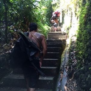 準備が整うと、谷底へ移動しますがこのとき10分ほど結構急な階段を下っていきます。