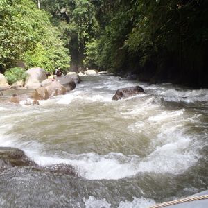 ツアーの始まりは、ホテルのピックアップから。ワゴン車に乗り込み、アドベンチャーツアーのラウンジに向かいます。ラウンジに到着した後は、ロッカーで着替えを済ませて、荷物を預けたら、再び車に乗り込み、ラフティングの受付場所まで移動します。ラフティングの受付終了後は、担当してくれるガイドの方と顔合せ。丁寧な日本語で挨拶してくれました。(時々間違いがありますが・笑)その後、ライフジャケット、ヘルメット、オールを装備し、ボートのある出発地点まで、長〜い階段を降りて行きます。川へ降りるまでの階段は滑りやすく急なので、ビーチサンダルよりも、水に濡れても良い靴をはいている方が良いと思います。川へ着くと、いよいよボートに乗り込み、ラフティングの開始です!熱帯雨林の自然を満喫しながら、時折スリルを味わい、長い川を下って行きます。野生の猿にも出会えるチャンスがあるかも⁉