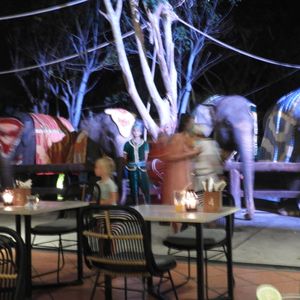 ライド後のディナーも本格的で、ゾウを眺めながら外で食べるのは非日常的でした。
