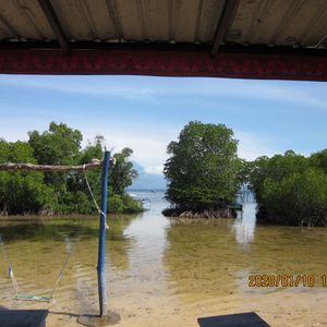スピードボートで40分程度でレンボンガン島へ到着して、軽トラの荷台に乗り込んで街中を進み、マングローブエリアの小型ボート出発地点へ