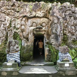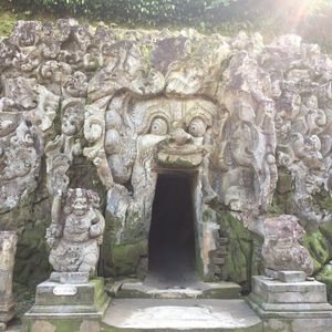 最初に【ゴアガジャ遺跡】に行きました。とてもいい天気の朝の散歩でした。レリーフはメインの顔が有名ですが周りにも動物がいるとガイドさんに教えてもらいました。レリーフの他にもパワースポットの大木、裏にある庭は神々しくて美しいの一言でした。