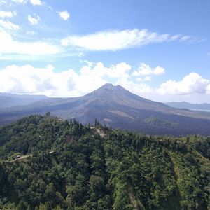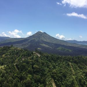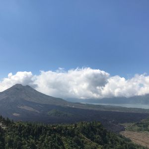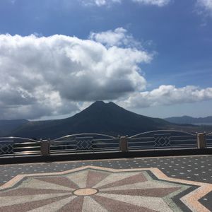 【キンタマーニ高原】で昼食を取りました。富士山に似ている美しい佇まいの山が目の前。少し早めでいい席を取ることができました。写真もたくさん撮ってもらいました。食事はバリ料理がメインです。ハエが気になりますが外なので仕方ないかな。
