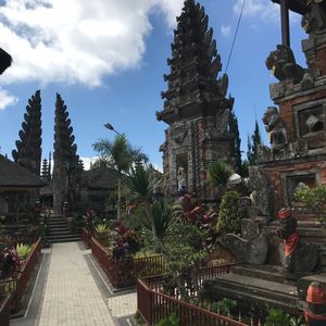 【ウルンダヌ バトゥール寺院】はちょうどお祭りをやっていました。地元の人が大勢正装して寺院にお参りしていました。車を降りるとガイドさんがサロンを貸してくれました。舞踊や歌、そしてカラフルに装飾された寺院がとても素敵でした。そして年に一度お祭りの日にしか開かない扉が開き珍しいからといいアングルでガイドさんに写真をたくさん撮ってもらいました。