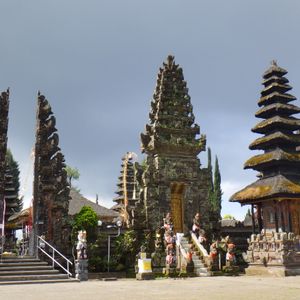 ブサキ寺院は噴火の影響があったため、代わりにウルンダヌバトゥル寺院へ。静かなお寺で敷地も広く、門の造詣がダイナミックでした。このお寺の観光体験談を読むと、高い腰巻を買わされたり、入場料を払わされたりしたとの書き込みがありました。確かに周りには強引そうな土産売りが多く、ガイドさんがいなかったら、結構払わされてたかもと思いました。