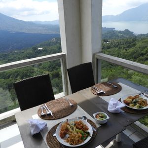 キンタマーニ高原での食事も景色がすばらしく、インドネシア料理を色々試せるバイキングで素敵でした。