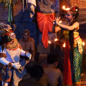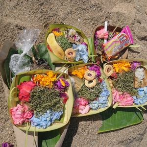 三つのヒンドウー教寺院を巡り、バリ舞踊の一つであるバロンダンスを鑑賞するこのツアーは、バリ島は信仰に溢れた島だと気づかせてくれました。町中に林立する寺院はもちろんのこと、各家庭の門、お店の入り口、車の運転席、サーフィンを楽しむビーチの砂の上などなど、手作りのお供えが溢れています。朝食を整えて、夫や子供をを送り出した後、主婦は木の葉で作った器に美しい様々なお花やお菓子でたくさんのお供えを毎日毎日作るそうです。家族はその行為に感謝をしているとも伺いました。なんて素敵な習慣でしょう。神様と共に家族仲良く暮らしているバリの人たちはとても幸せそうです。