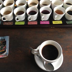 数種類のコーヒーと紅茶の飲み比べはなんと無料!その後、ジャコウネコのコーヒーも飲みました。豆も2種類あるようで、味も違って、本当に美味しかったです!ご興味のある方はぜひお勧めします!