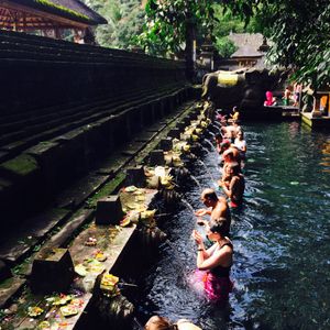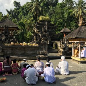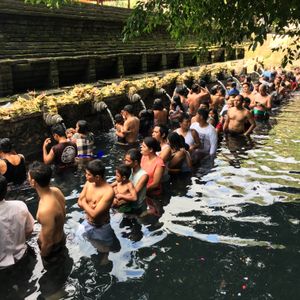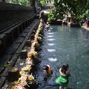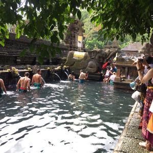 聖水で沐浴をしている方が沢山いました。壁から水が出ている場所が複数あり、それぞれ場所によって意味が違うんだそうです。ブクブクと湧水が出ているとてもキレイな泉を見たり、ちょうどバリヒンドゥ教のお坊さんが来て礼拝をしている姿を見てとても神秘的でした。