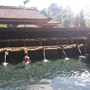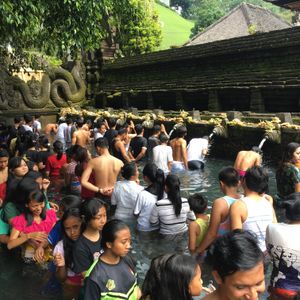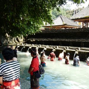 3箇所目のティルタ・エンプル寺院。こちらでは腰にかわいい布を巻いて入ります。聖なる水に触れてお願いごとを…。
