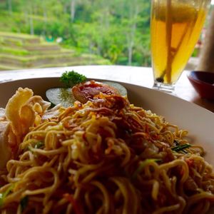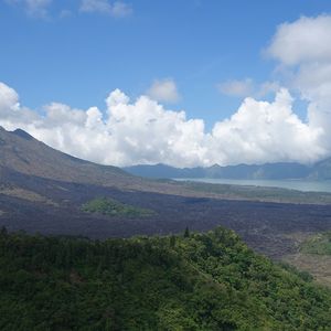 午前中から盛りだくさんのツアーは、キンタマーニ高原に向かい昼食へ。雄大な山とバドゥール湖の景色を楽しめるレストランでした。インドネシア料理のブッフェで、どの料理を食べても美味しくて大満足。ハエが沢山いて、追い払うのに一苦労でしたが(笑)