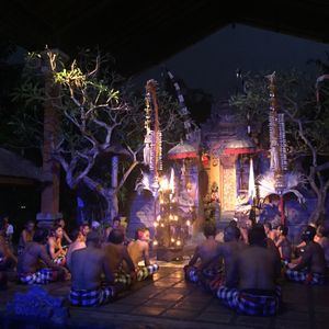 ほんとに圧巻でとてもすごかった。特に、トランス状態に陥った青年の役の方が、火の熱さも感じなくなるというところで、ほんとに素足で炎に飛び込んでいたのがとても印象的です。終わったあとに写真を撮ってもらって楽しかった。最後に、私たちがお肉が食べたいというリクエストでスペアリブの美味しいお店に連れて行っていただいた。この値段でこのプランならまた利用したいです。