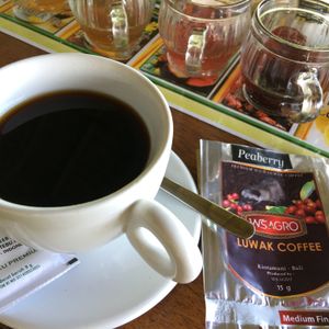 コーヒーや木の実がたくさんなる農園を案内してもらった後、ジャコウネコのコーヒーを飲んでみました。味覚音痴な私には細かな違いはわかりませんでしたが、お土産にもちょうどよくジャコウネココーヒーと、他の紅茶数点を購入しました。試飲もたくさんできてとても楽しかったです。
