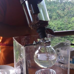 ここでは農園で作られたバラエティに富んだコーヒー・紅茶の無料サンプルをテイスティングできます。バリの名産、ジャコウネコのコーヒー「コピ・ルワク」は別料金(USD5)ですが、是非ケチらずに堪能してください。丁寧にサイフォンで淹れたコーヒーを絶景のウブドのカフェでいただけるのは、バリならではの体験です。