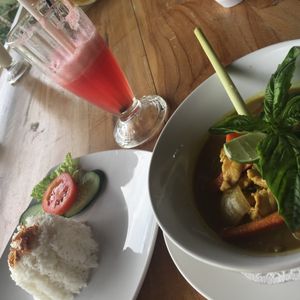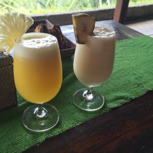 ビュフェでは、懸念していた「バリ腹」もなく、バリらしい料理を問題なく美味しくいただきました。南国フルーツジュースやビールも頼むことができます。