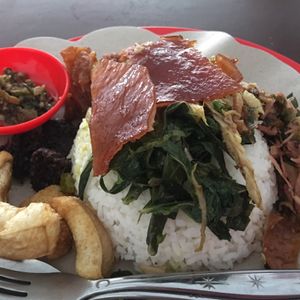 そして、昼食です。昼食もかなり眺めの良いところで、インドネシア料理食べ放題です。日本でいうような、焼き鳥のようなサテや、ナシゴレン、フルーツなど、全て食べ放題。キンタマーニ高原を眺めながらの食事は本当に最高でした!