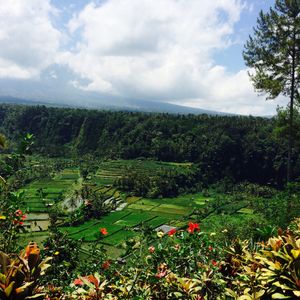 始めに、ウブドから車で15分ほどのテガラランを訪れました。バリ島ではインディカ米やタイ米が1年を通じて生産され、最大1年で3回収穫ができること、また、ライステラスには上流のダムから水を引いていることなどをガイドさんに説明していただきました。