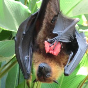 昔ながらの集落を見学して標高の高い場所でライステラスを見ながらのビュッフェ。早く到着して準備ができていなかったためフルーツやナシゴレンなどどんどんサービスで持ってきてくれてとてもおいしく超満腹状態に。そのレストランの入り口には大きなこうもりさんが、、かわいい。