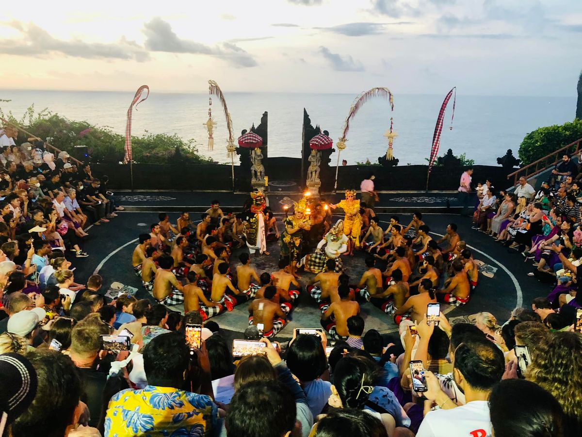 お陰で何とかウルワツ寺院には夕暮れに間に合い、ケチャダンス鑑賞。演目のあらすじをメモでいただいていたので、内容もよくわかり楽しめました。